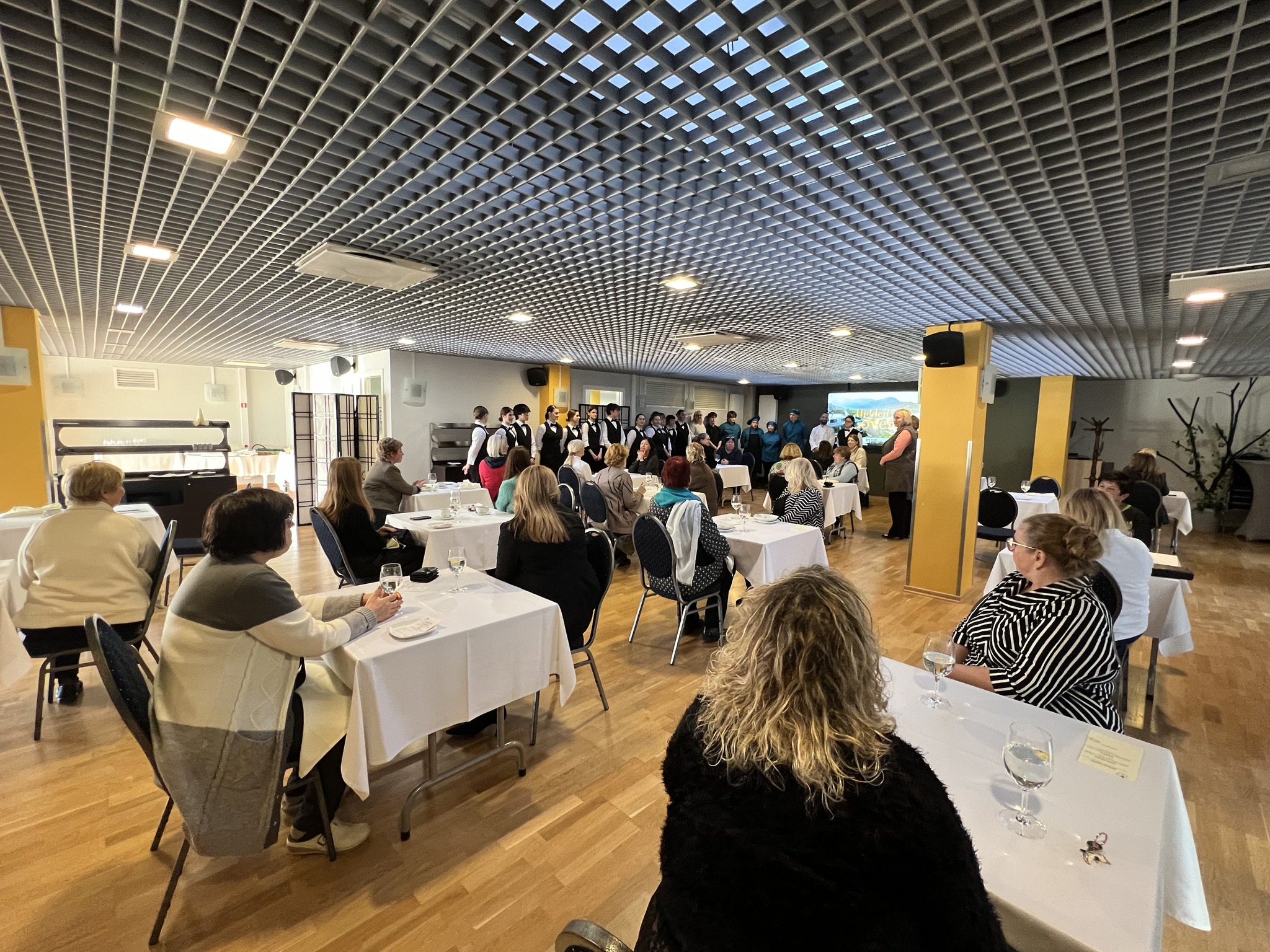 Par izsmalcināto garšu rūpējās skolotājs Edgars Balodis kopā ar grupu E24-9/10 , savukārt sirsnīgu un profesionālu apkalpošanu nodrošināja V22-1/2 grupas audzēkņi skolotājas Zandas Frīdenbergas vadībā