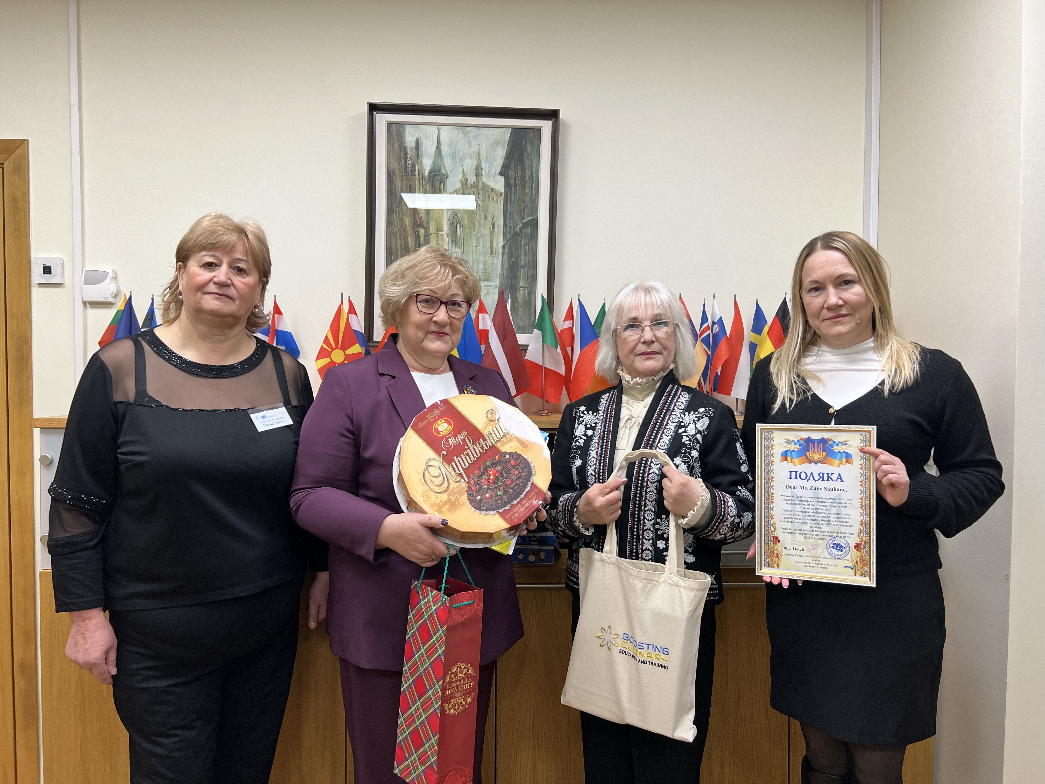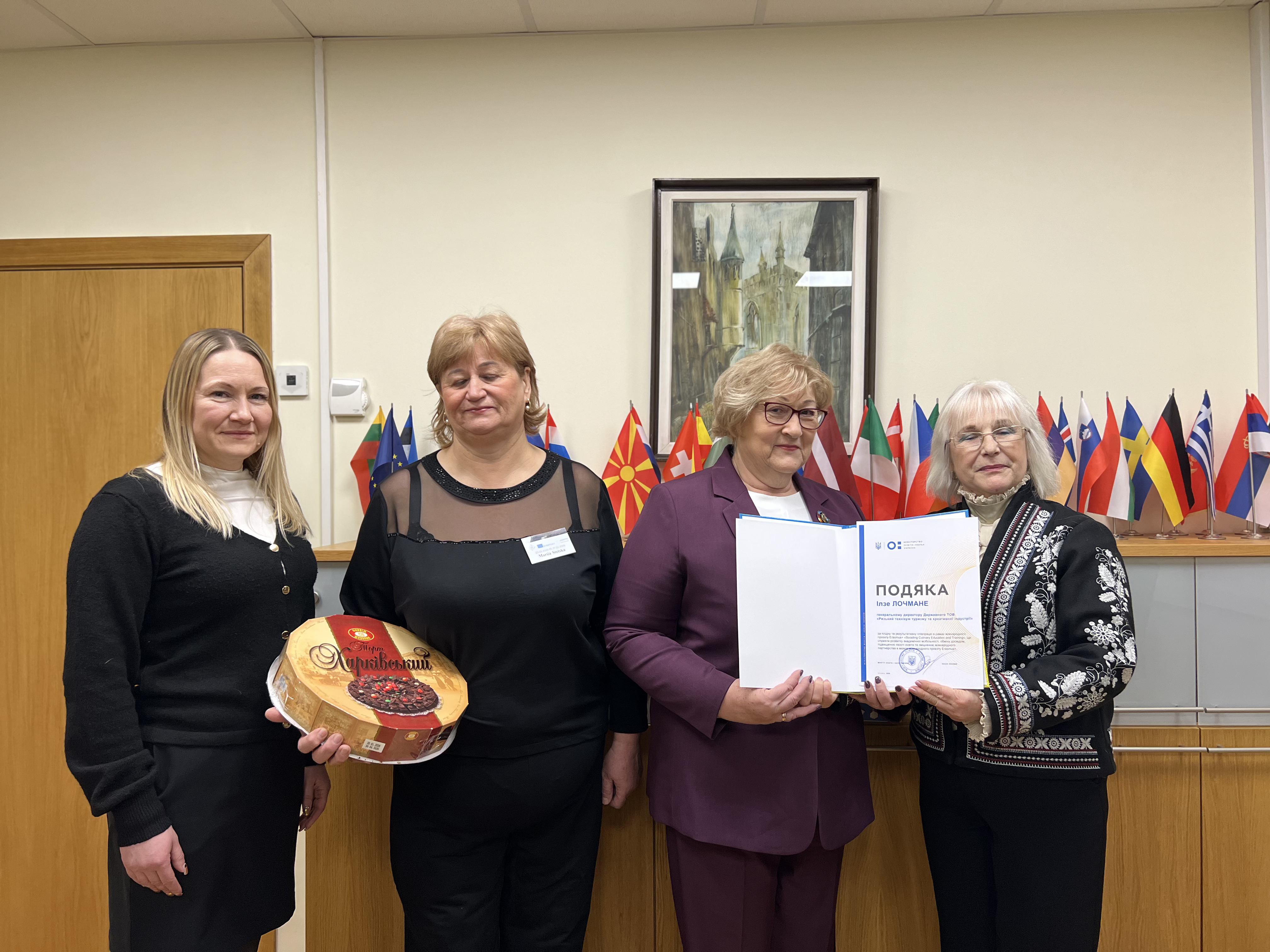 Tehnikuma direktorei Ilzei Ločmanei tika pasniegts pateicības raksts no Ministry of Education and Science of Ukraine par nozīmīgu un rezultatīvu sadarbību starptautiskā Erasmus+ projekta “Boosting Culinary Education and Training” ietvaros, veicinot akadēmisko mobilitāti, pieredzes apmaiņu un izglītības kvalitātes stiprināšanu.