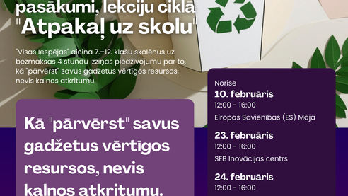 “Visas Iespējas” aicina 7.–12. klašu skolēnus un tehnikuma audzēkņus uz bezmaksas 4 stundu izziņas piedzīvojumu par to, kā savus gadžetus pārvērst vērtīgos resursos, nevis atkritumu kalnos.