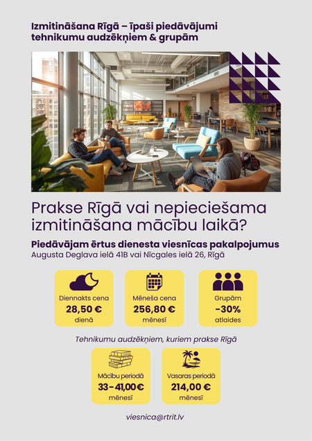 Dienesta viesnīcas skolotāji: 26497395, 26421707