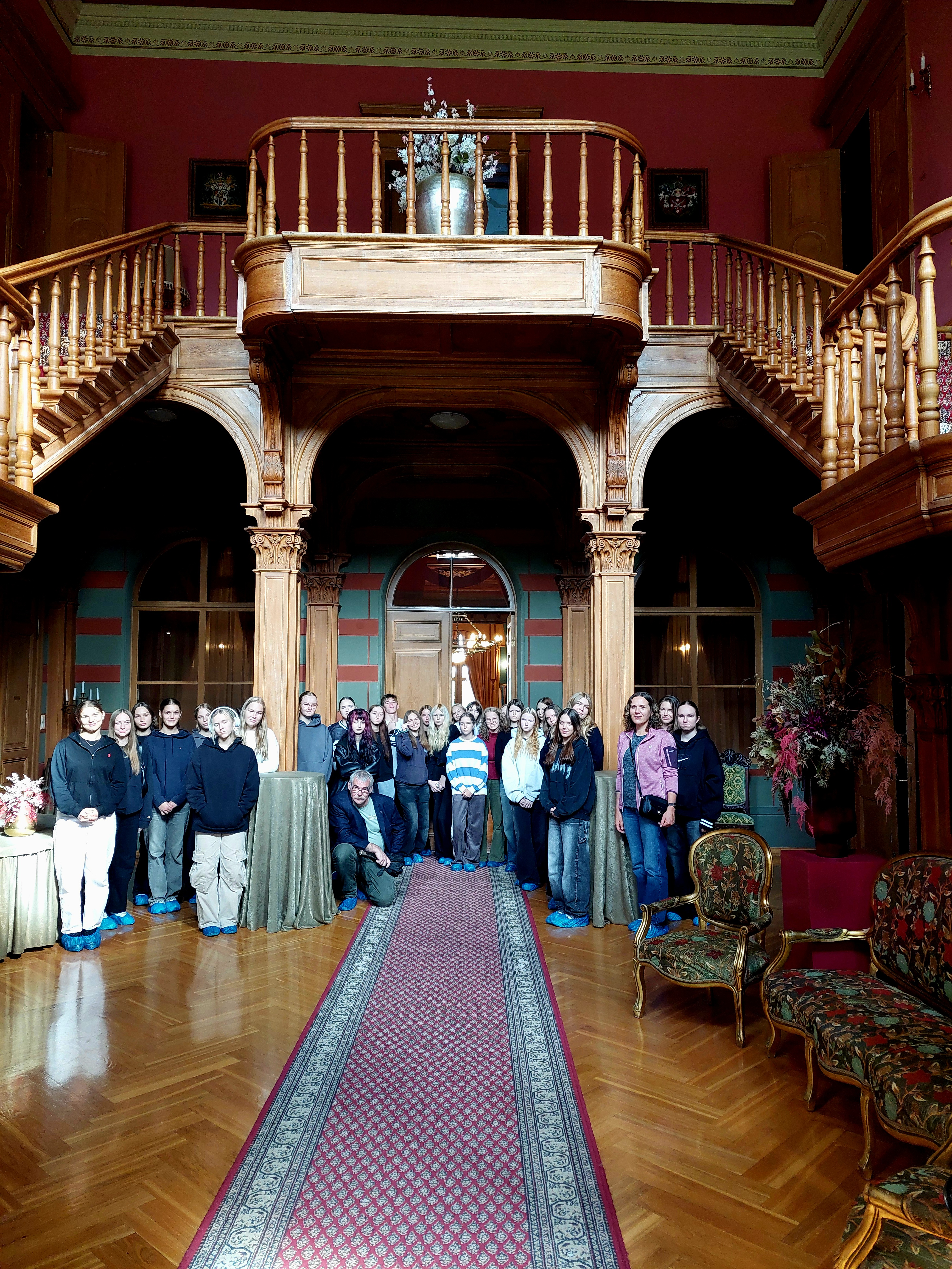 Ekskursijas pirmā pietura bija Minhauzena muzejs, kur ekskursantus sagaidīja harizmātiskā gide ar ļoti aizraujošu stāstījumu par neparasto barona dzīvi un neticamajam piedzīvojumiem, muzejā iepazīstinot arī ar interesantiem eksponātiem.