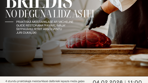 “Briedis. No deguna līdz astei”: Meistarklasē dalībnieki iepazīs meža gaļas apstrādes un pagatavošanas tehnikas augstās gastronomijas kontekstā, pilnveidojot profesionālās prasmes pieredzējuša šefpavāra vadībā. Praktiska pieredze, nianses, garšas un profesionāli triki, kas iedvesmo.