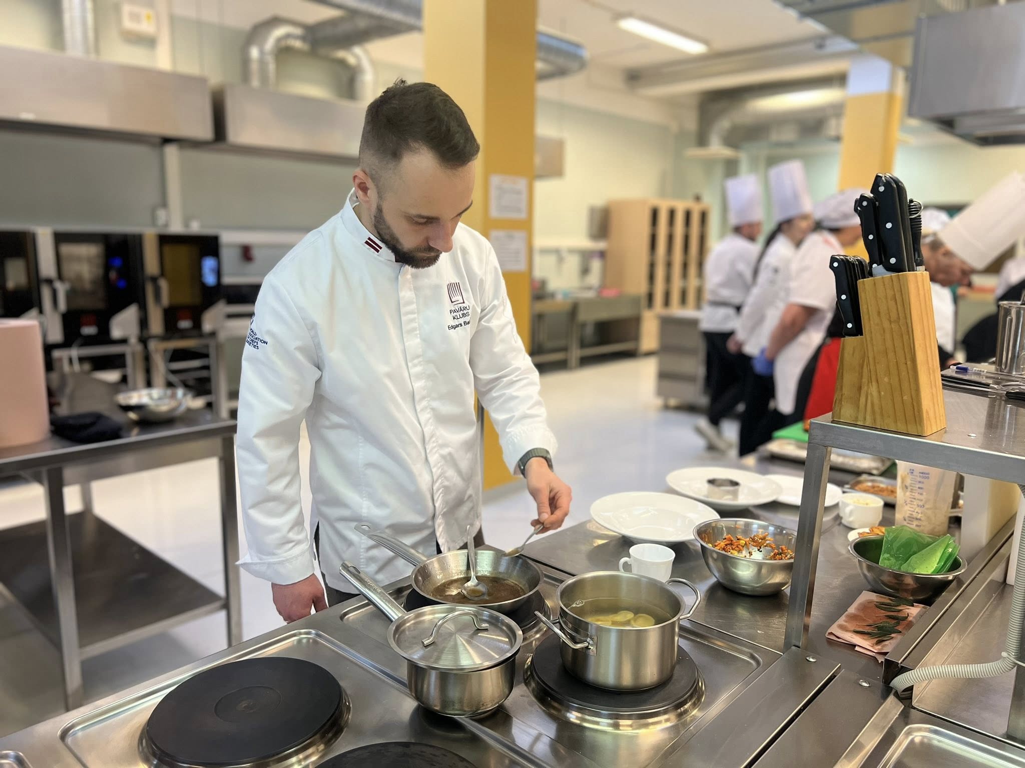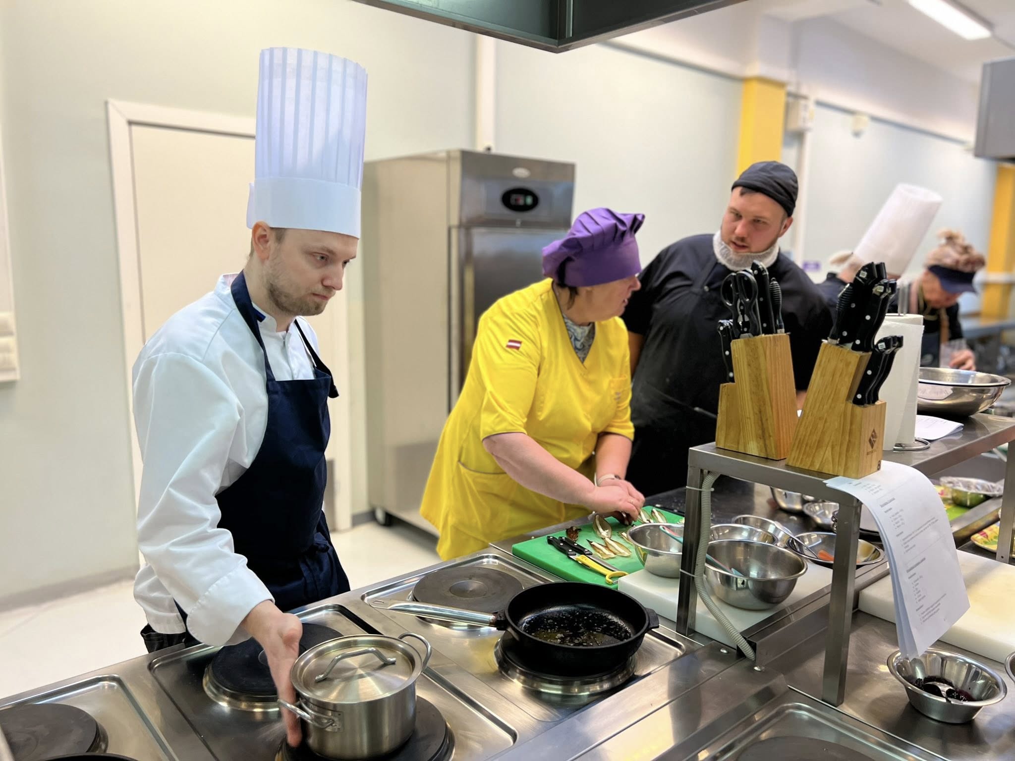Šonedēļ mūsu tehnikumā viesojās eksperti Kairi un Markus no Tartu Rakenduslik Kolledž. Vizītes mērķis bija sniegt profesionālus padomus un izklāstīt būtiskākos priekšnoteikumus veiksmīgai dalībai gastronomijas konkursos.