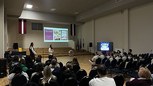Agnese un Evelīna dalījās arī savos studiju piedzīvojumos LBTU - Latvijas Biozinātņu un tehnoloģiju universitāte, sniedzot ieskatu mācību procesā, studiju vidē un iespējās, ko piedāvā LBTU. Īpaši tika akcentēta saikne starp iepriekš iegūtajām profesionālajām prasmēm un augstākās izglītības prasībām.