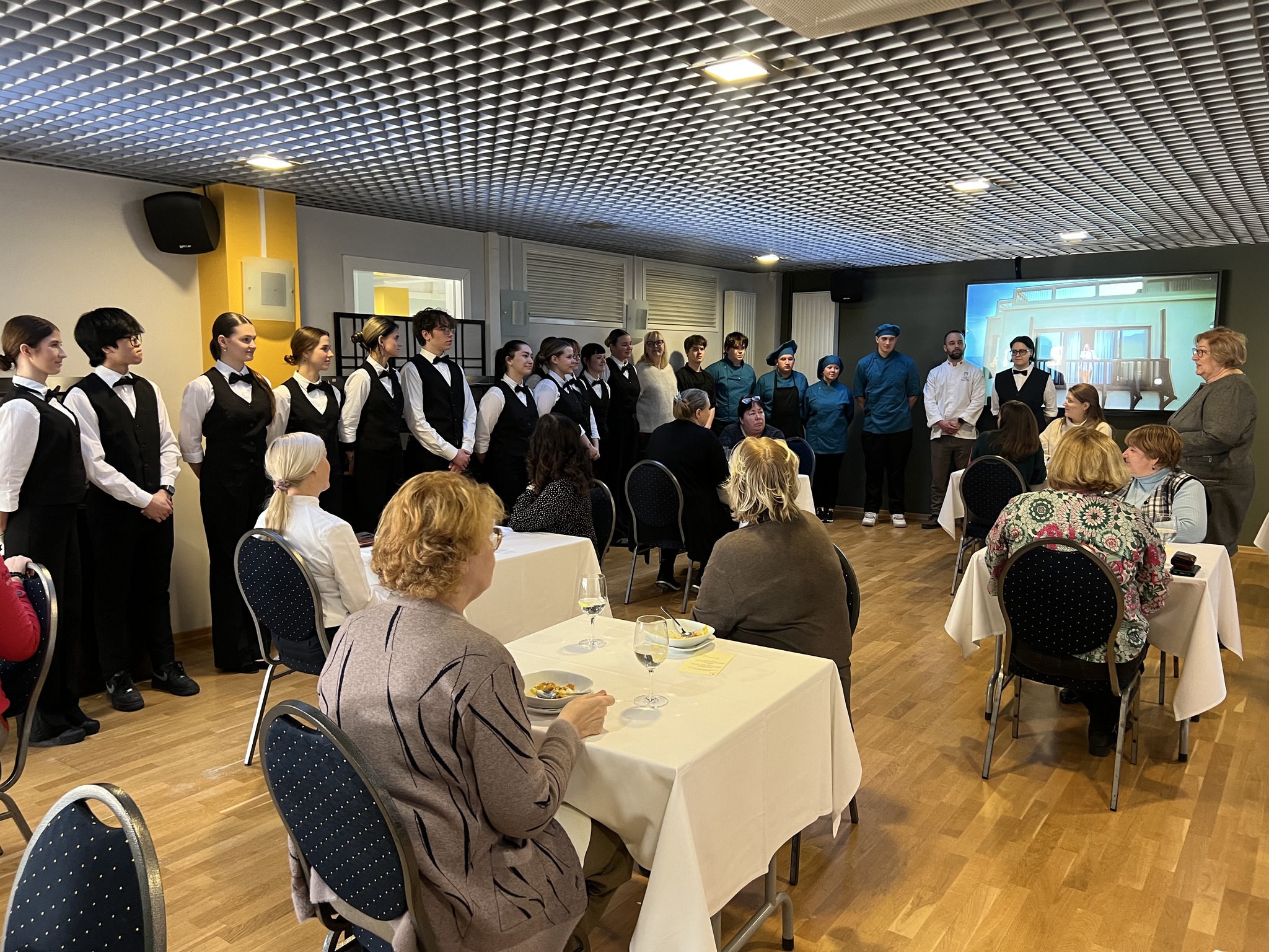 Par izsmalcināto garšu rūpējās skolotājs Edgars Balodis kopā ar grupu E24-9/10 , savukārt sirsnīgu un profesionālu apkalpošanu nodrošināja V22-1/2 grupas audzēkņi skolotājas Zandas Frīdenbergas vadībā