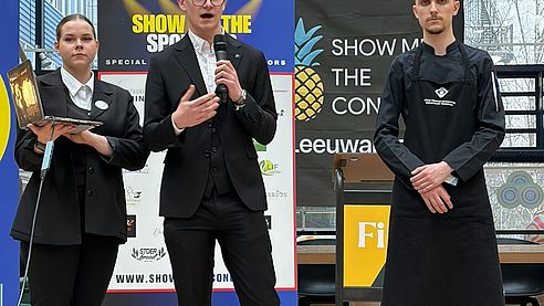 Mūsu studenti Karlīna Kleiva, Roberts Sūna un Lauris Hanis piedalījās starptautiskajā konkursā “Show Me The Concept” Lēvardenā, Nīderlandē, kur izstrādāja un angļu valodā prezentēja savu viesmīlības nozares konceptu.