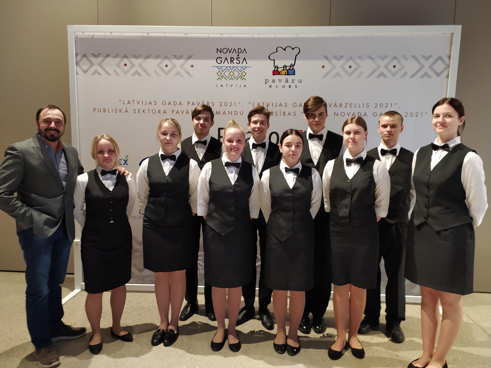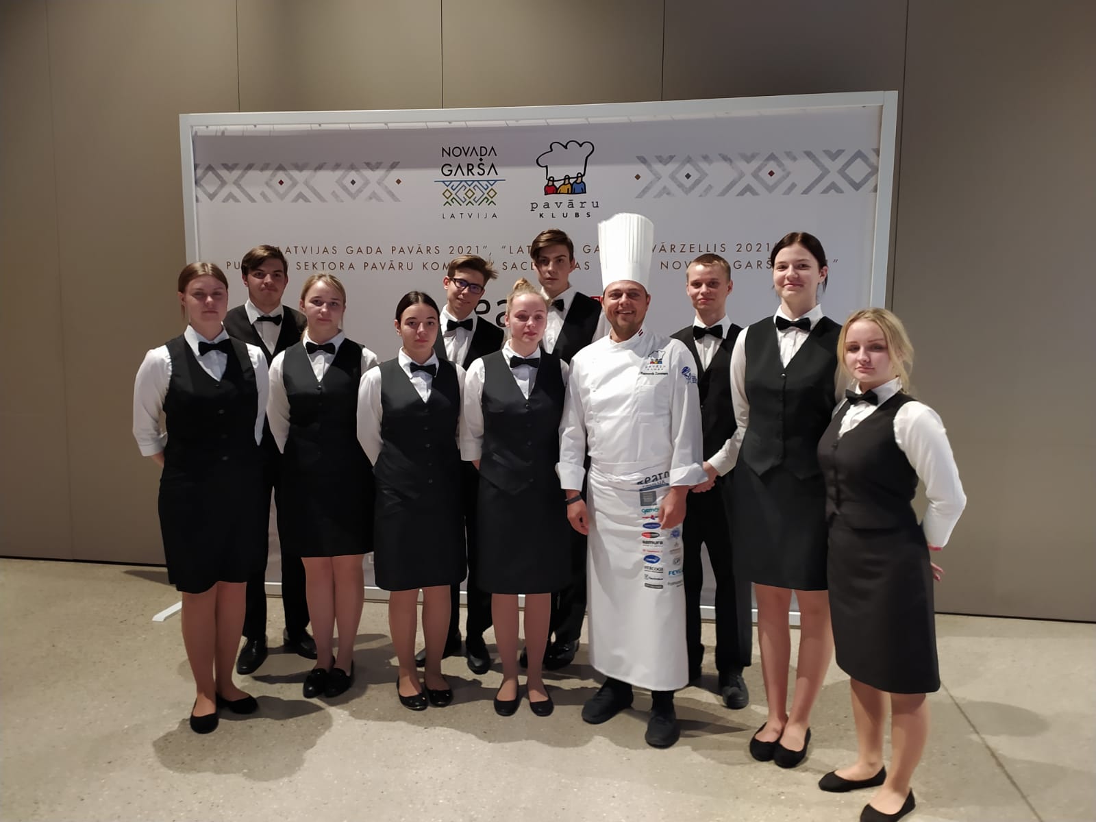 “Novadu garša 2021” konkursa “Mazo ražotāju produktu kvalitātes konkurss” apkalpošanā piedalās 10 viesmīļi un 10 pavāri skolotāju Ingas Kuršas un Irinas Duvanovas vadībā.