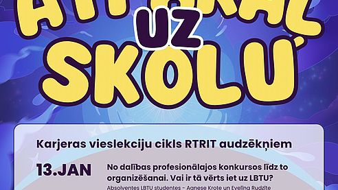 Aicinām 13. janvārī uz šī semestra pirmo karjeras vieslekciju "No dalības starptautiskajos konkursos līdz to organizēšanai. Vai ir vērts iet uz LBTU?"' , kas norisināsies no plkst. 12.20 līdz 13.50.