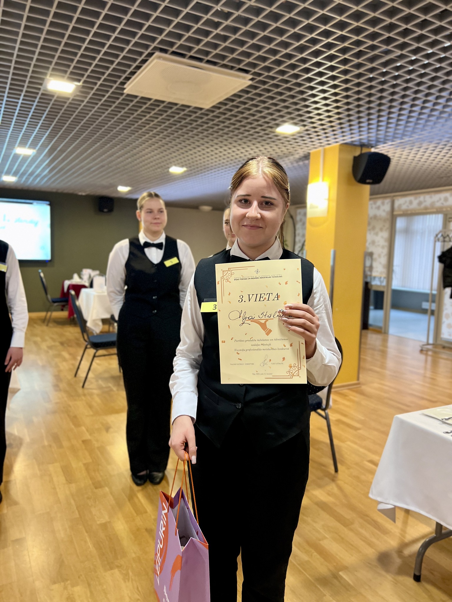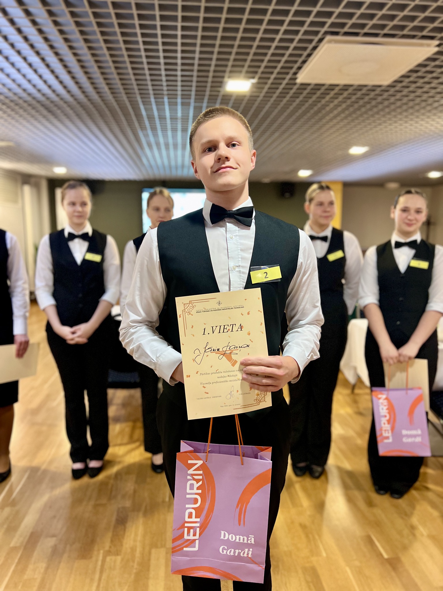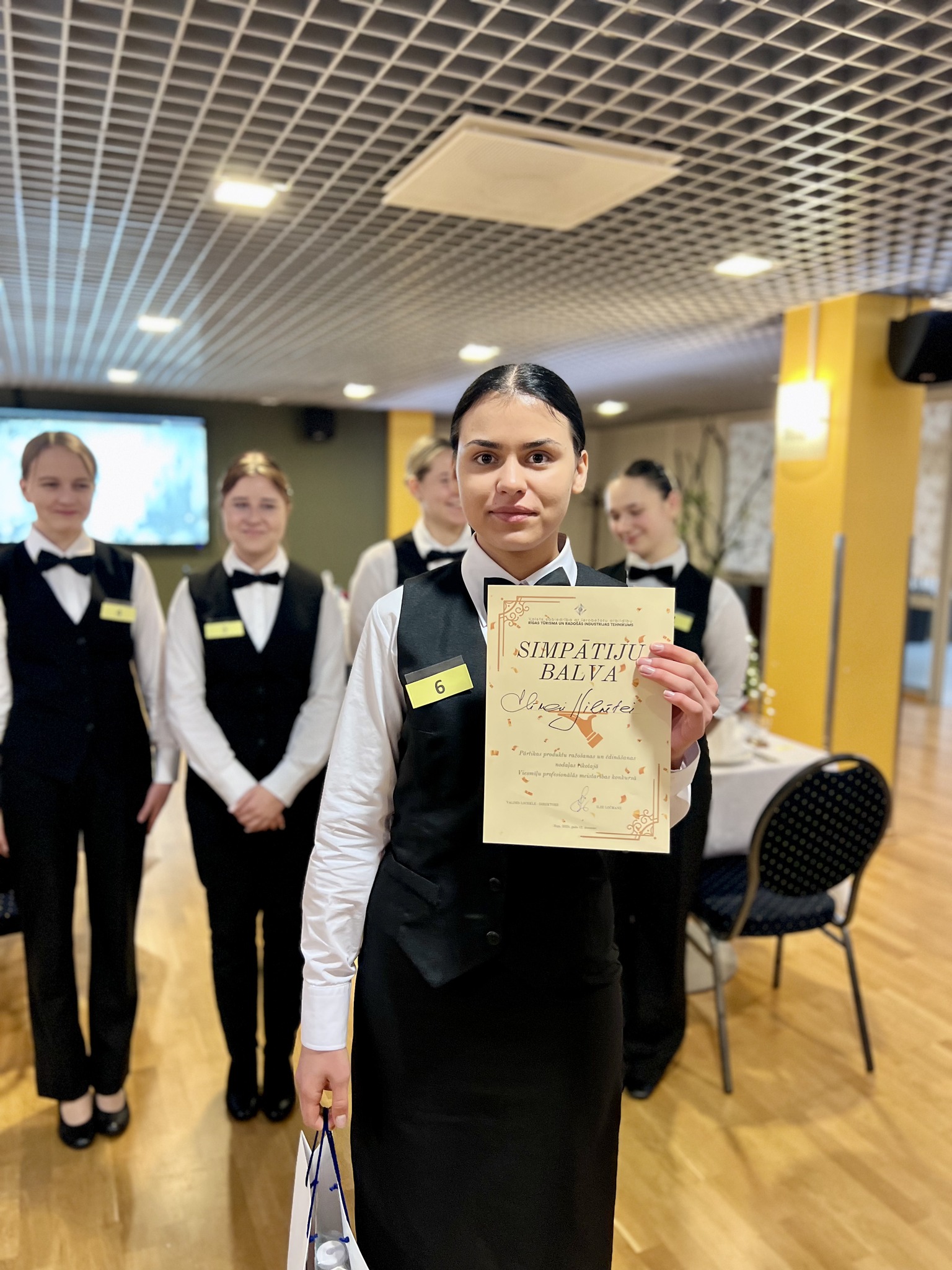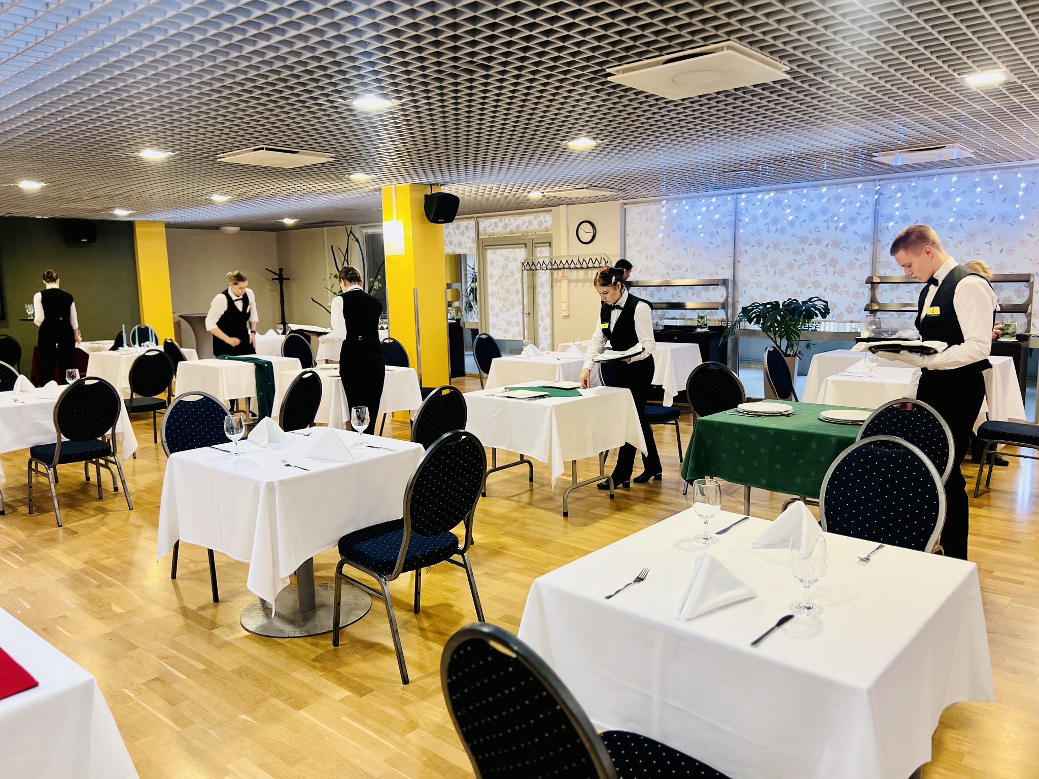 Jaunie topošajiem viesmīļi pierādīja savu prasmi eleganti klāt galdu, profesionāli apkalpot viesus, veikt flambēšanu un izveidot mākslinieciski skaistu augļu plati. Šī bija lieliska iespēja demonstrēt zināšanas, ātrumu, iznesību un radošumu – prasmes, kas viesmīlības nozarē ir neatsveramas.