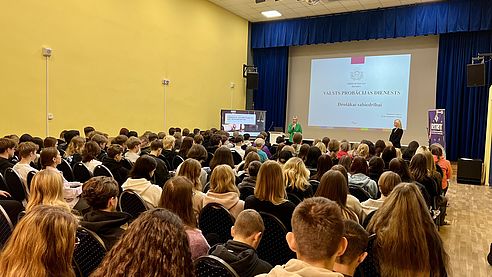 Šodien tehnikumā viesojās Valsts probācijas dienesta pārstāves Evita Samanta Vanaga un Madara Ceimere, lai iepazīstinātu pirmo kursu audzēkņus ar dienesta darbu un nozīmi sabiedrībā.