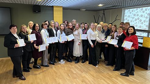 Noslēgumā dalībnieki saņēma sertifikātus, notika pateicības un atvadas, un partneri pauda gatavību turpināt sadarbību arī nākamajos projektos un profesionālās pilnveides pasākumos.