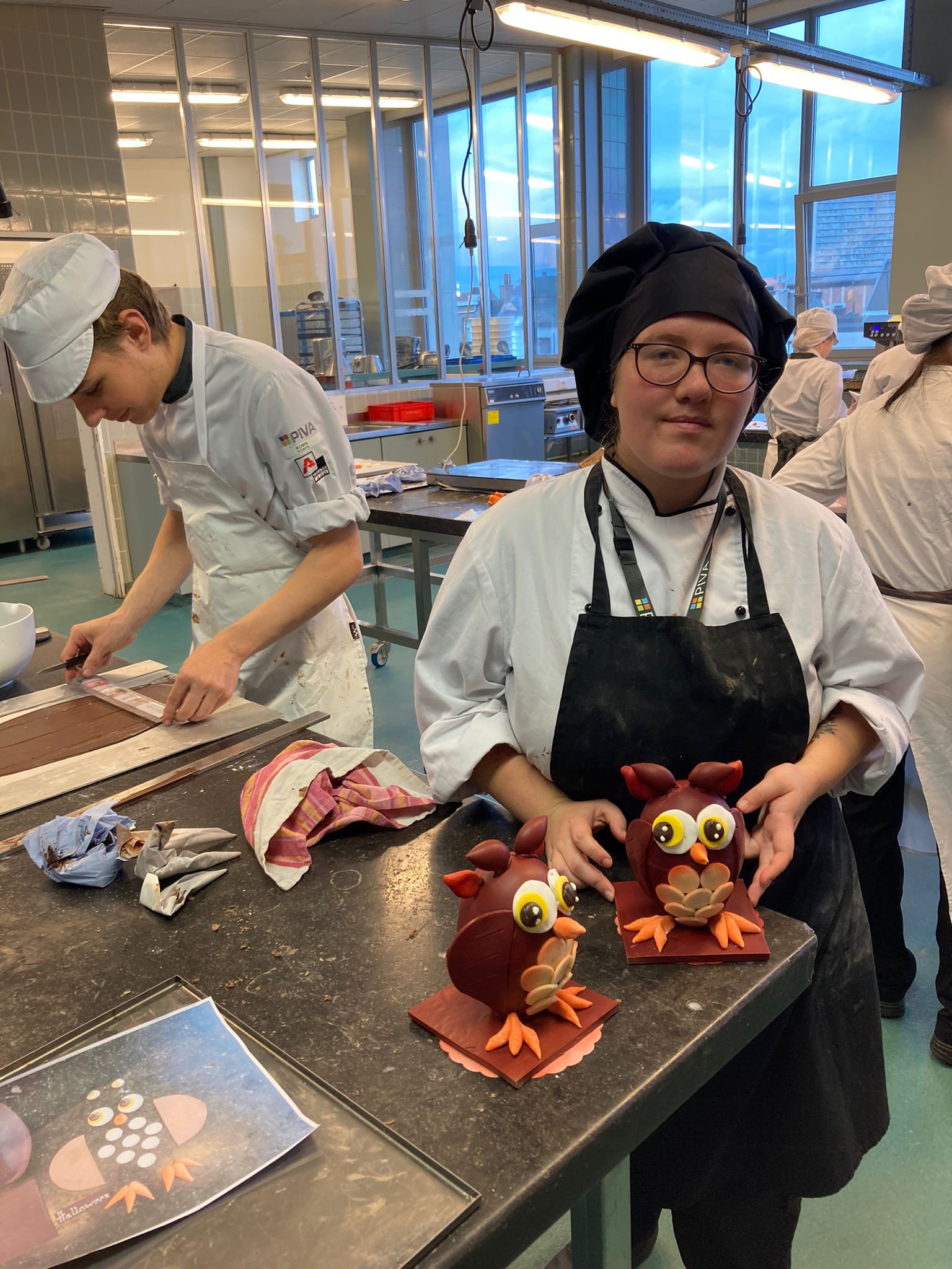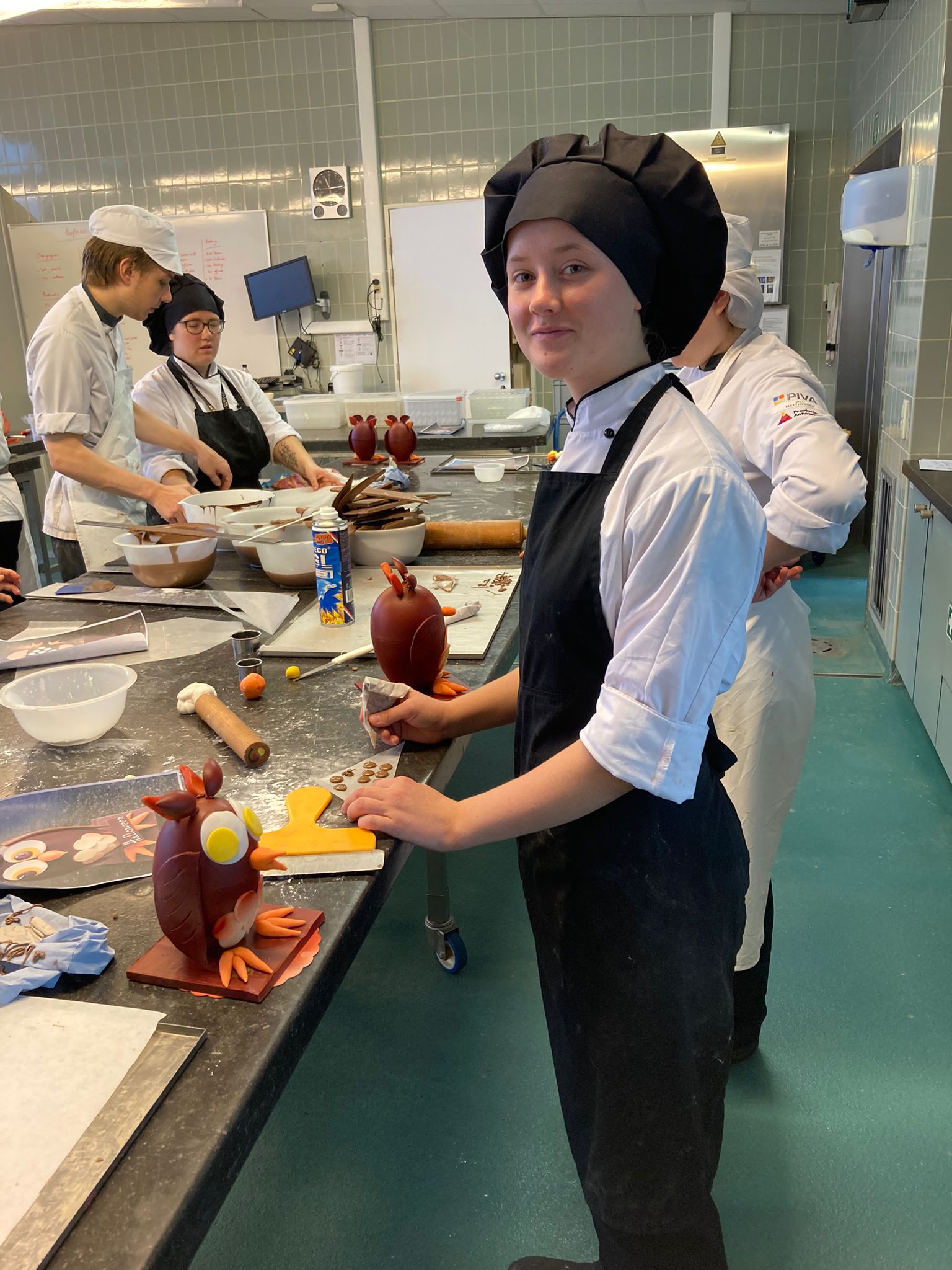 - Mums bija arī praktiskās nodarbības skolā "PIVA", kopā ar audzēkņiem. Nodarbībās mēs praktizējām savas zināšanas konditorejas lomā, strādājām ar šokolādi.