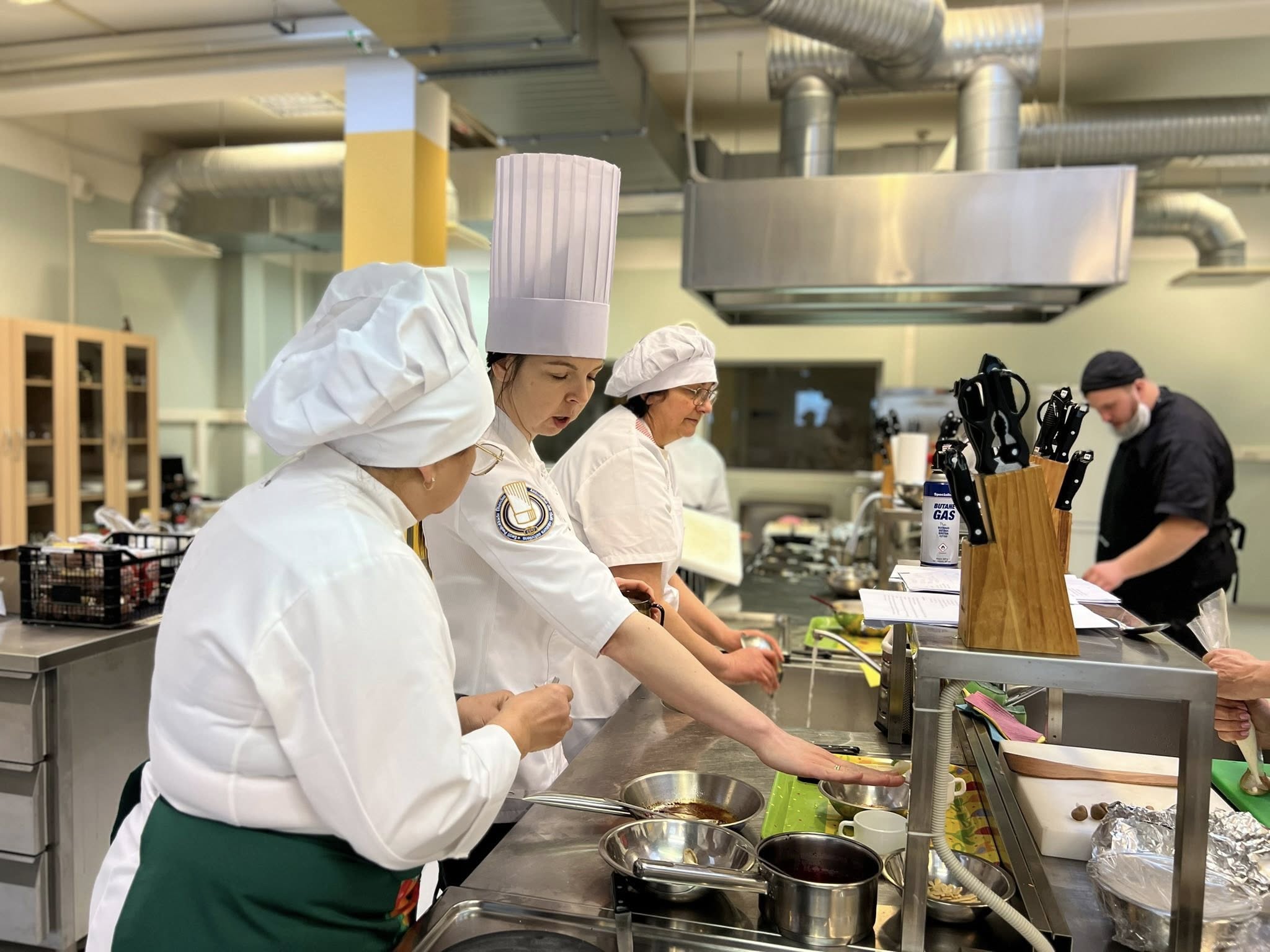 Šonedēļ mūsu tehnikumā viesojās eksperti Kairi un Markus no Tartu Rakenduslik Kolledž. Vizītes mērķis bija sniegt profesionālus padomus un izklāstīt būtiskākos priekšnoteikumus veiksmīgai dalībai gastronomijas konkursos.