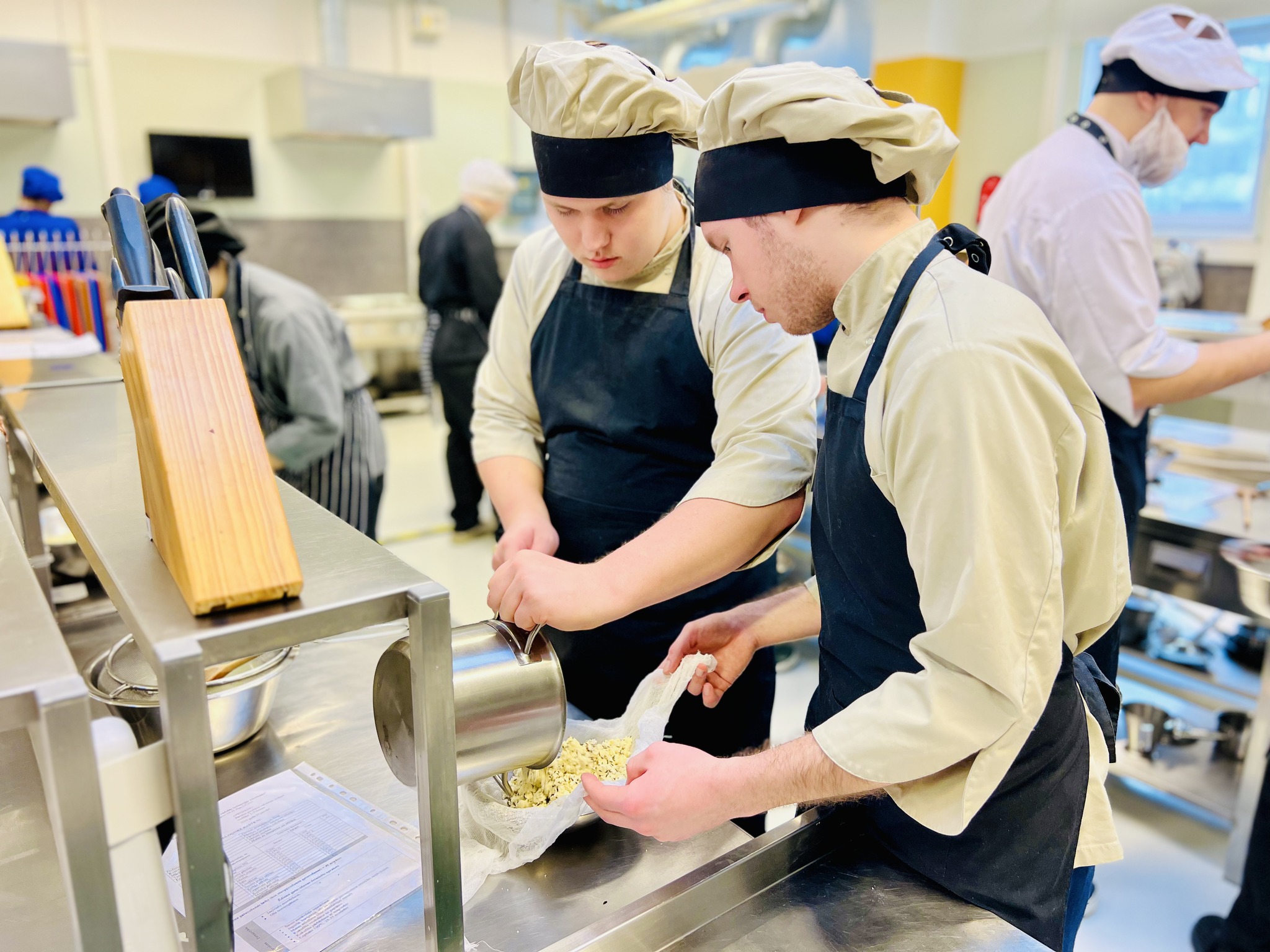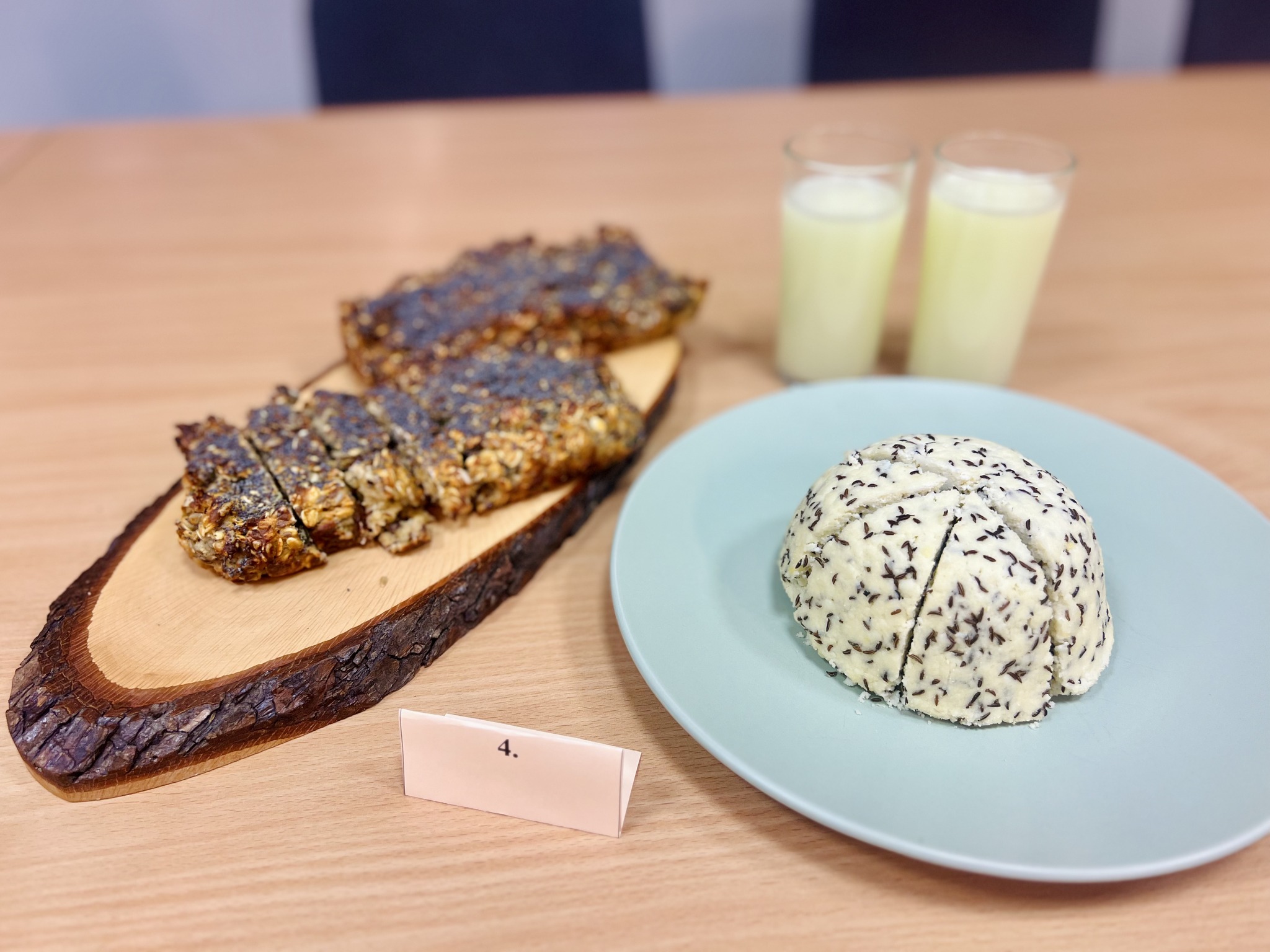 Maizes un miltu produktu ražošanas tehniķa grupas izglītojamie konkursā gatavoja sēklu–dārzeņu maizi, demonstrējot tehnisko precizitāti, radošumu un izcilu laika plānošanu. Savukārt Pārtikas produktu ražošanas tehniķa grupas konkursanti pagatavoja mājas sieru un komandā to prezentēja, apliecinot gan profesionālās iemaņas, gan spēju sadarboties un pārliecinoši uzstāties.