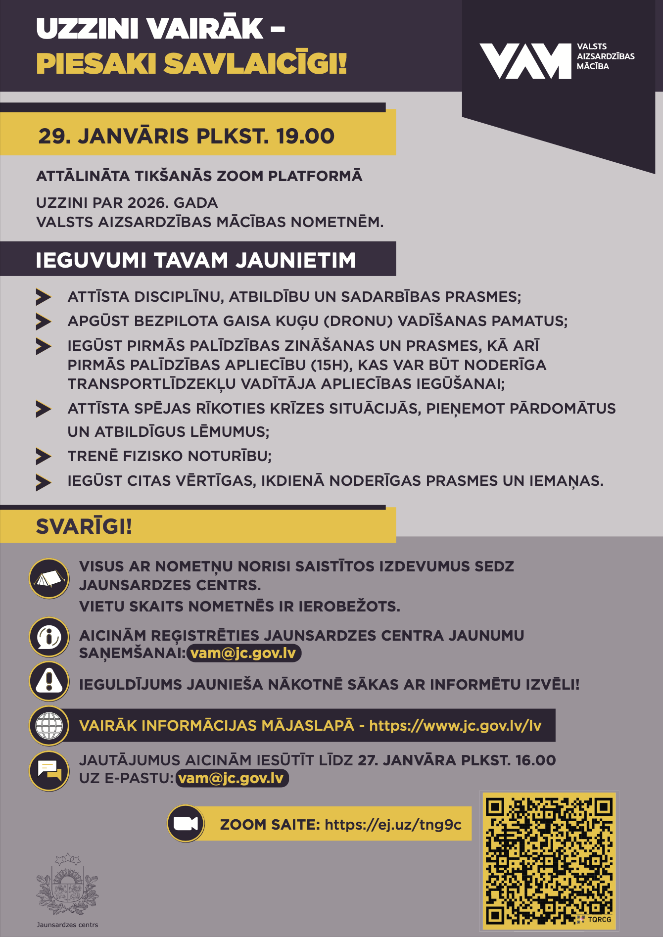Aicinām reģistrēties Jaunsardzes centra jaunumu saņemšanai: vam@jc.gov.lv;